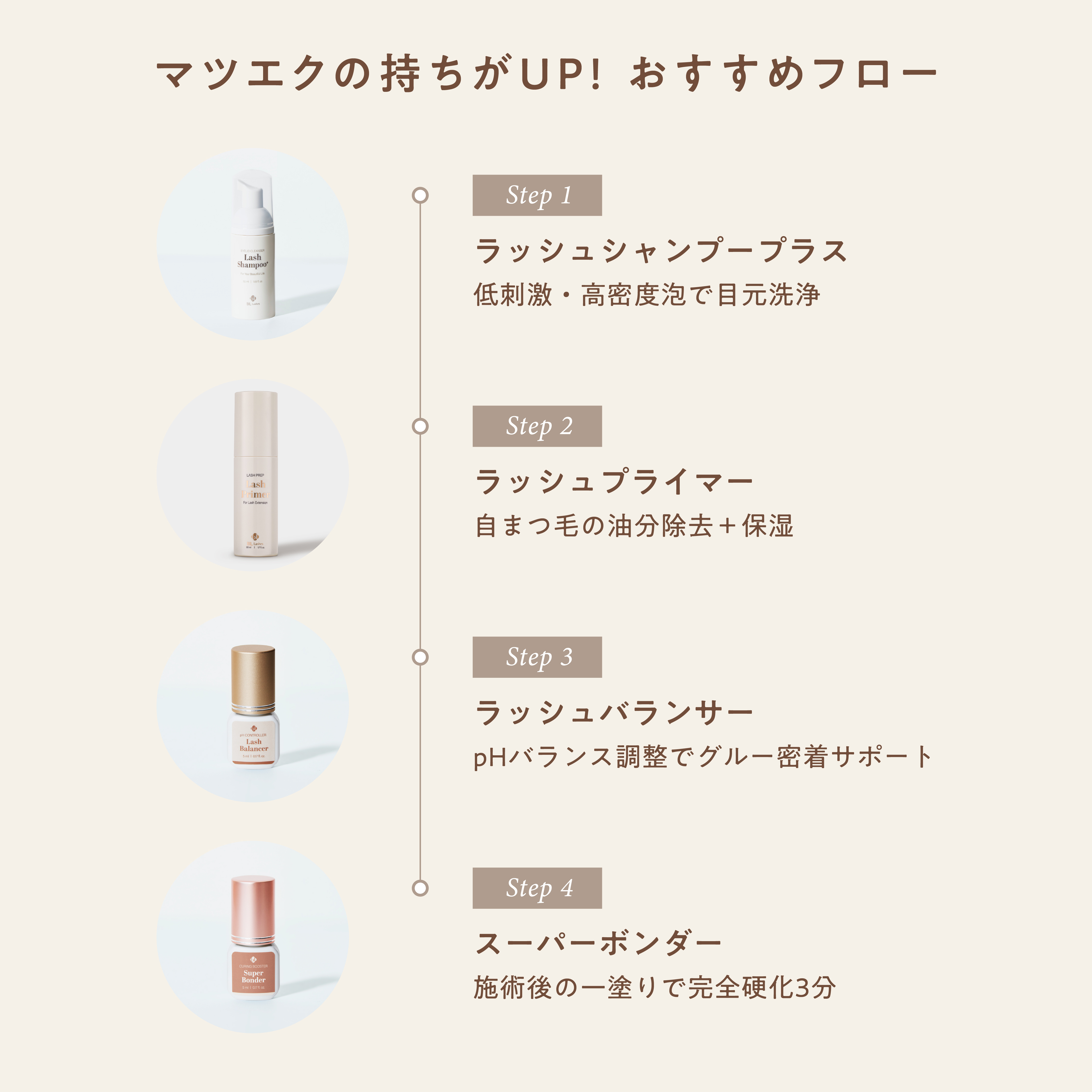 ・しっかりと自まつ毛の油分と汚れを除去し、グルーとの接着力をアップします。